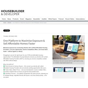 A piece on why Developers need broader visibility and a clearer route to market for Affordable Homes, and how a centralised marketplace can speed up transactions and reduce stalled deals.